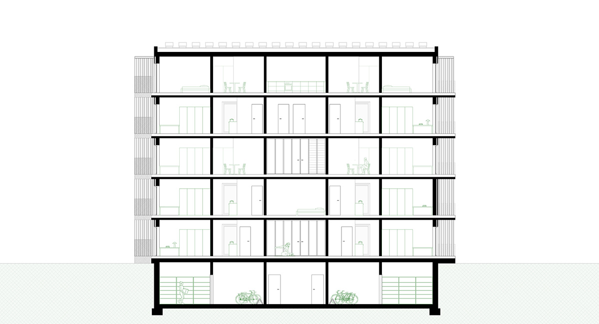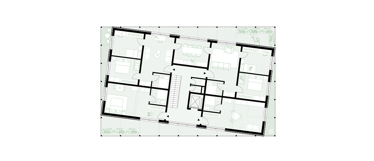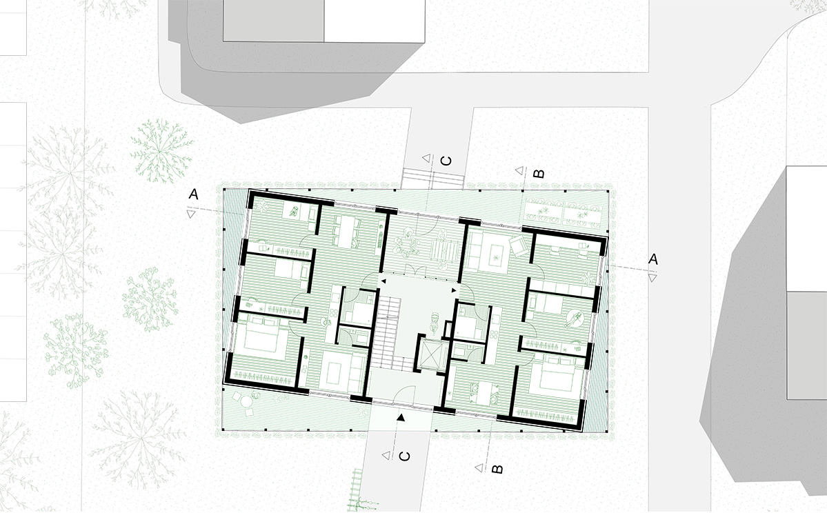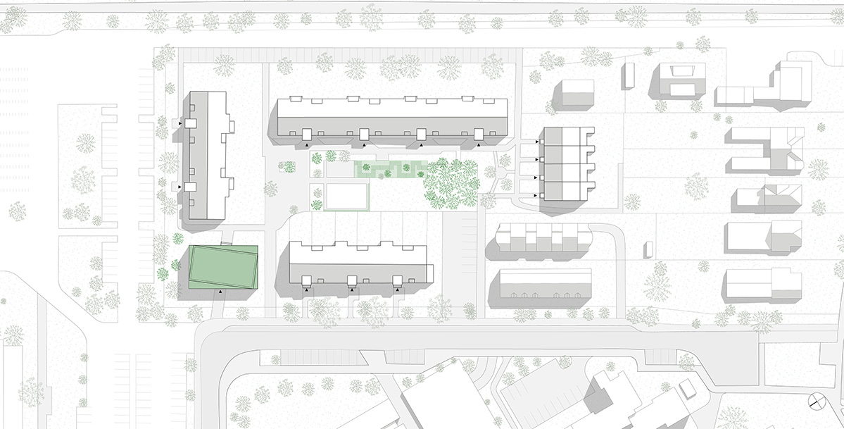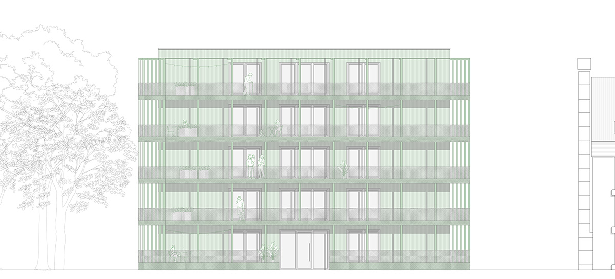 Konkret soll unter dieser Fragestellung ein Grundstück in der Spittaler Straße in Bremen Horn-Lehe bearbeitet werden, auf dem sich momentan noch eine Parkpalette befindet. Neben dem neuen Gebäude, dass hier konzipiert wird, soll das gesamte Ensemble mitgedacht und gegebenfalls freiräumlich und durch kleine bauliche Änderungen modifiziert werden, so dass Familien in diesem Umfeld gut leben können.