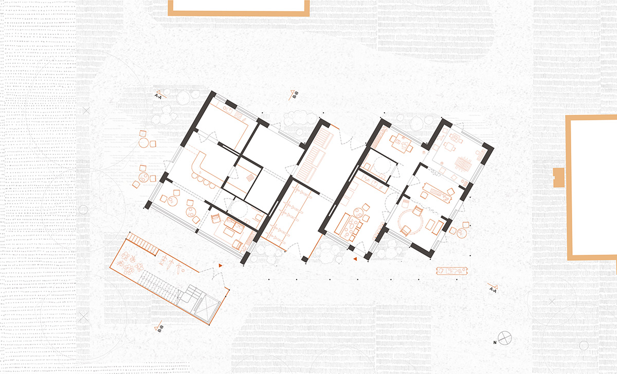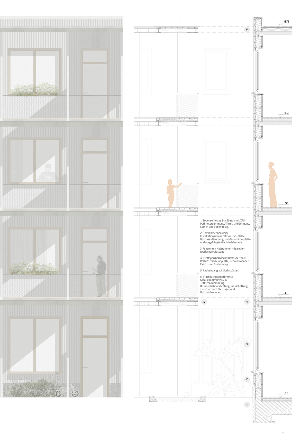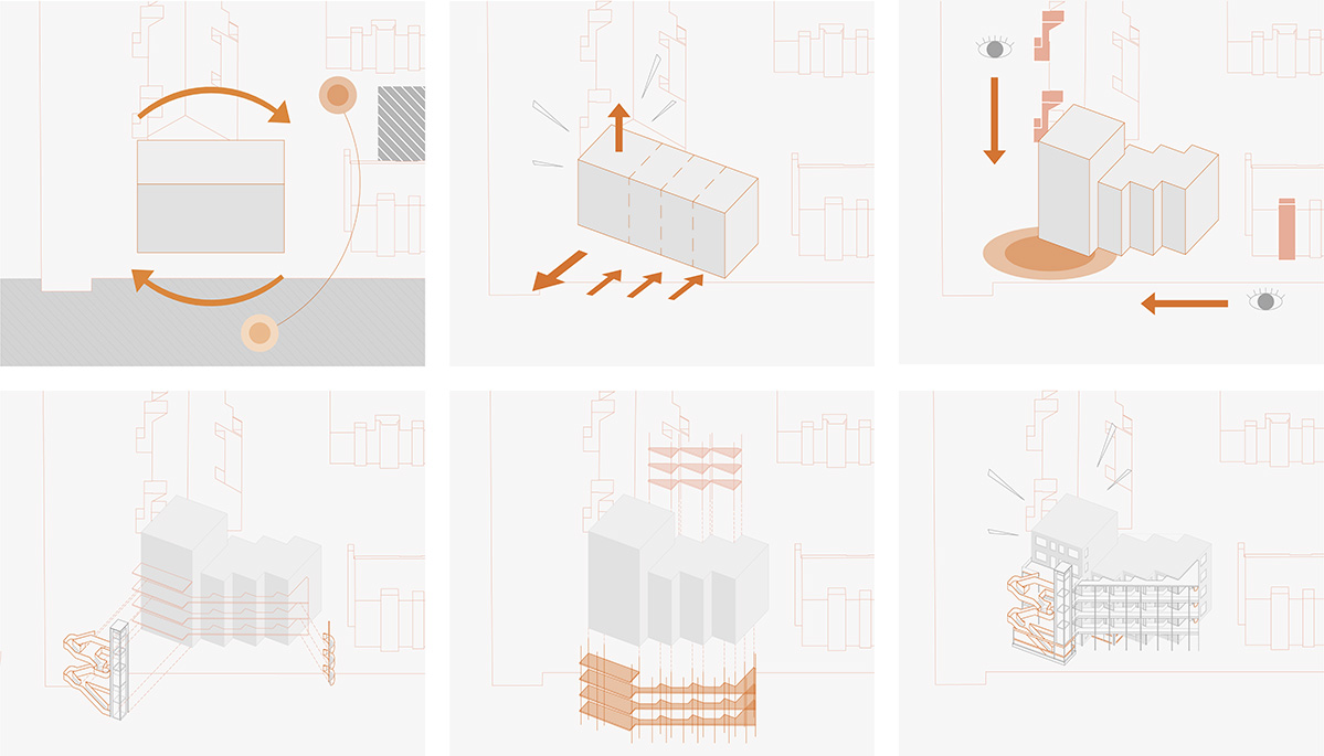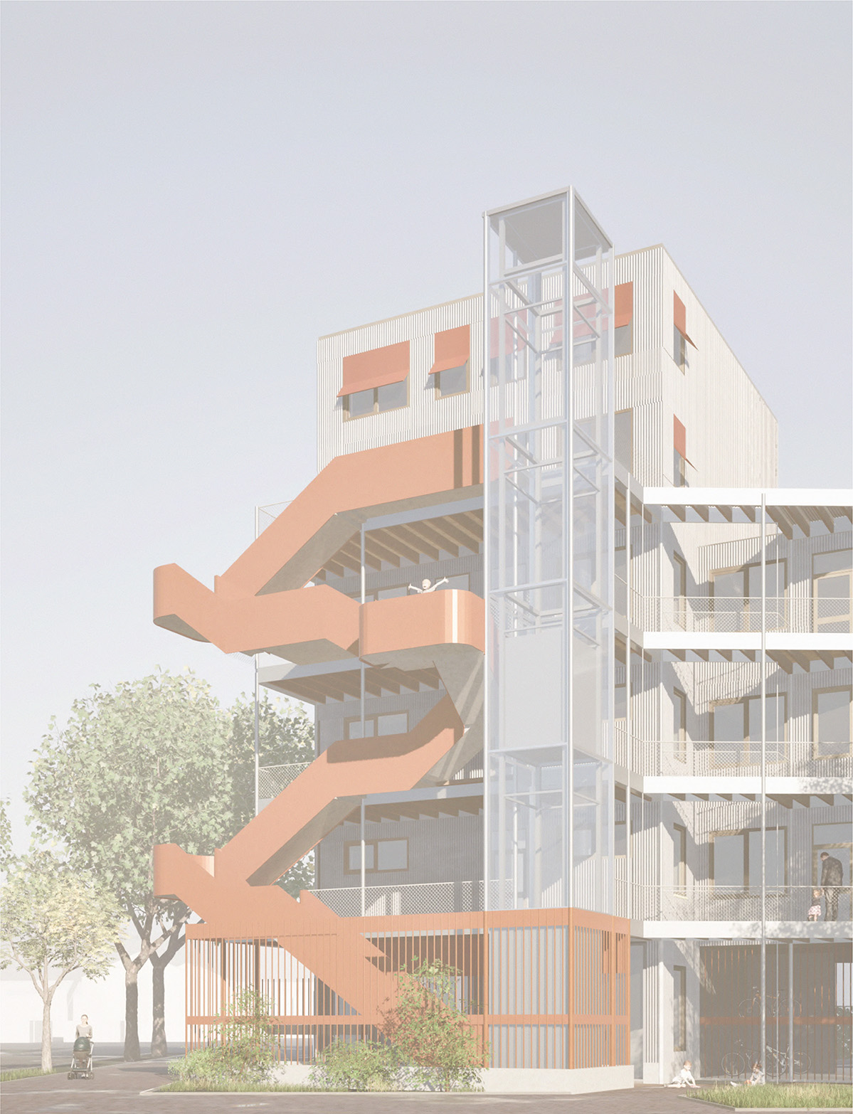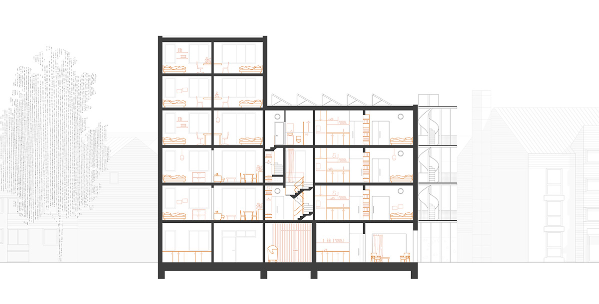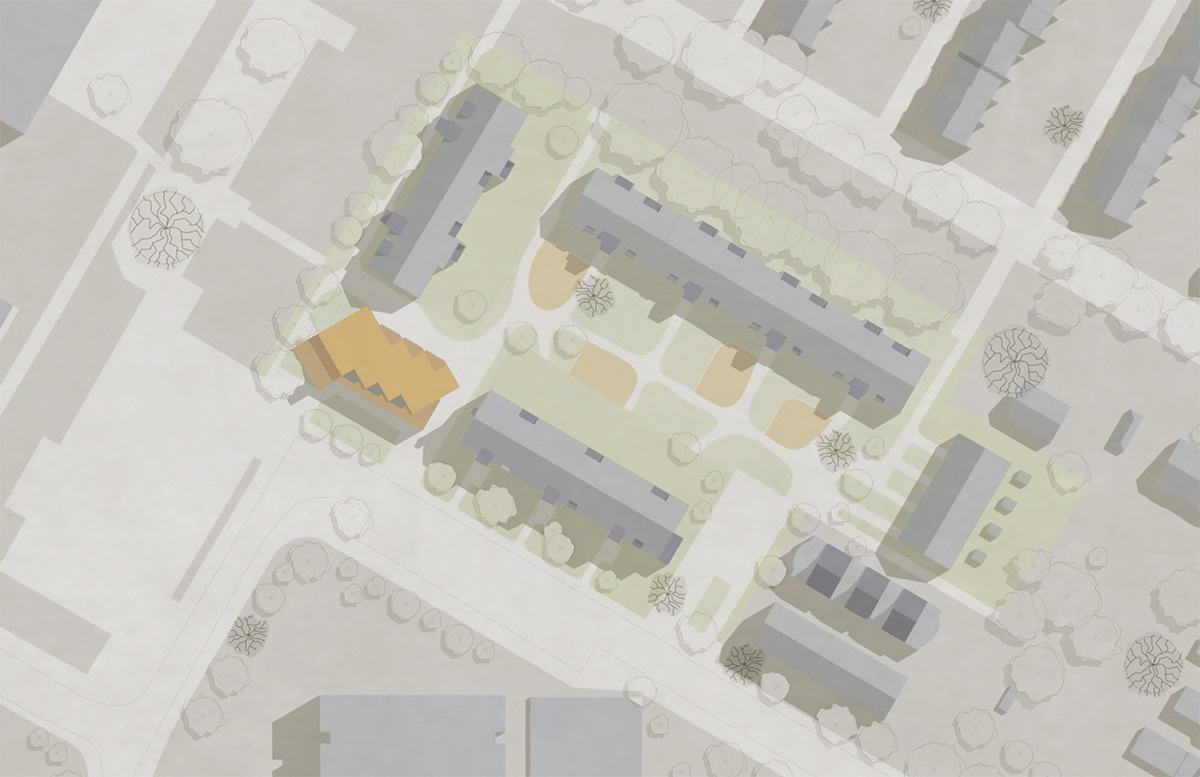 Konkret soll unter dieser Fragestellung ein Grundstück in der Spittaler Straße in Bremen Horn-Lehe bearbeitet werden, auf dem sich momentan noch eine Parkpalette befindet. Neben dem neuen Gebäude, dass hier konzipiert wird, soll das gesamte Ensemble mitgedacht und gegebenfalls freiräumlich und durch kleine bauliche Änderungen modifiziert werden, so dass Familien in diesem Umfeld gut leben können.